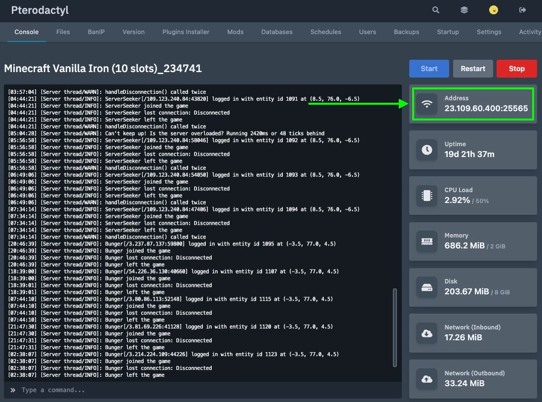 - Find the information about your server IP and Port and copy it to your clipboard. You can find the IP address and Port of your Minecraft Server in the welcome email we send you after you order a game server. You can also find it in your game control panel (see the screenshot below).