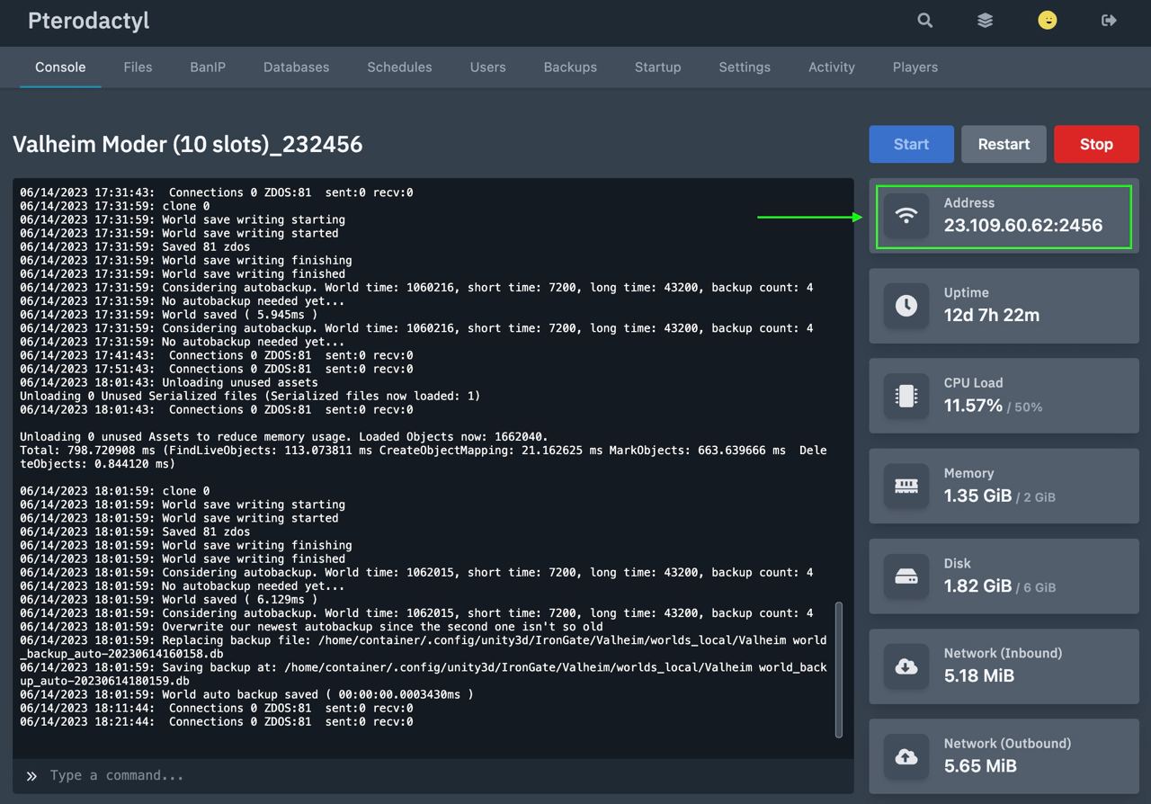 - If you have a couple of game servers, click on your Valheim server in the server list.